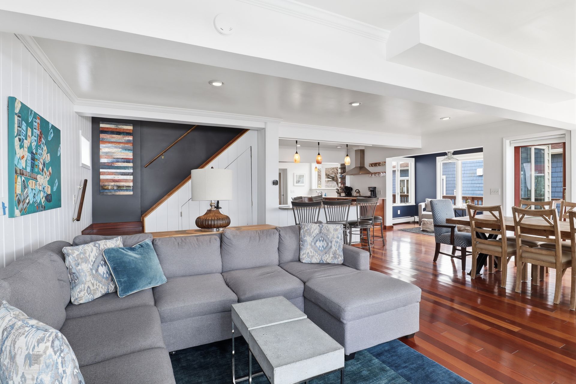 One main house on the water, plus a furnished carriage house across a private drive 20 feet away. Large enough for privacy.